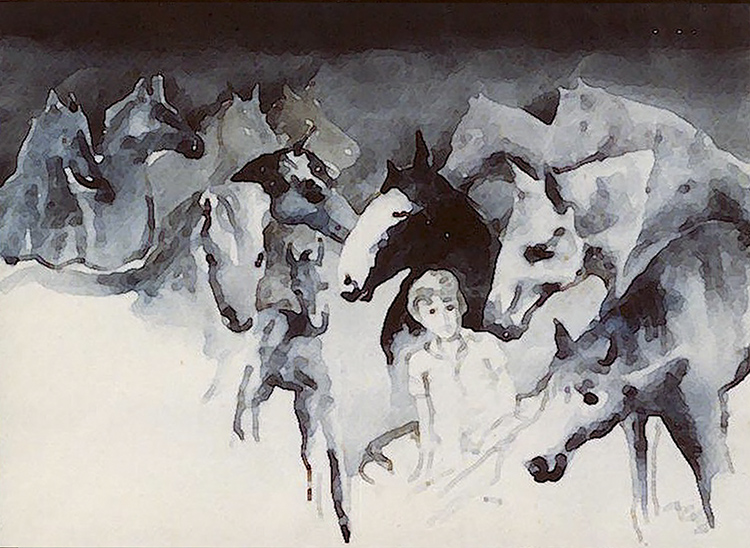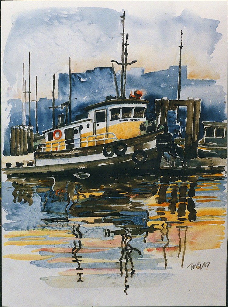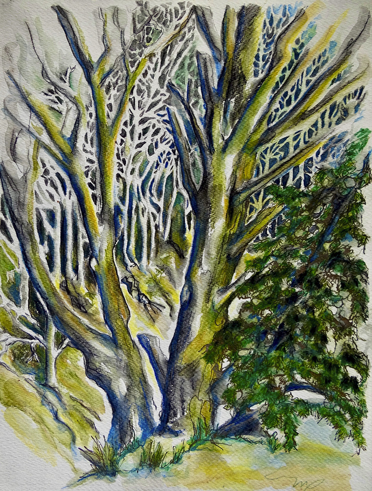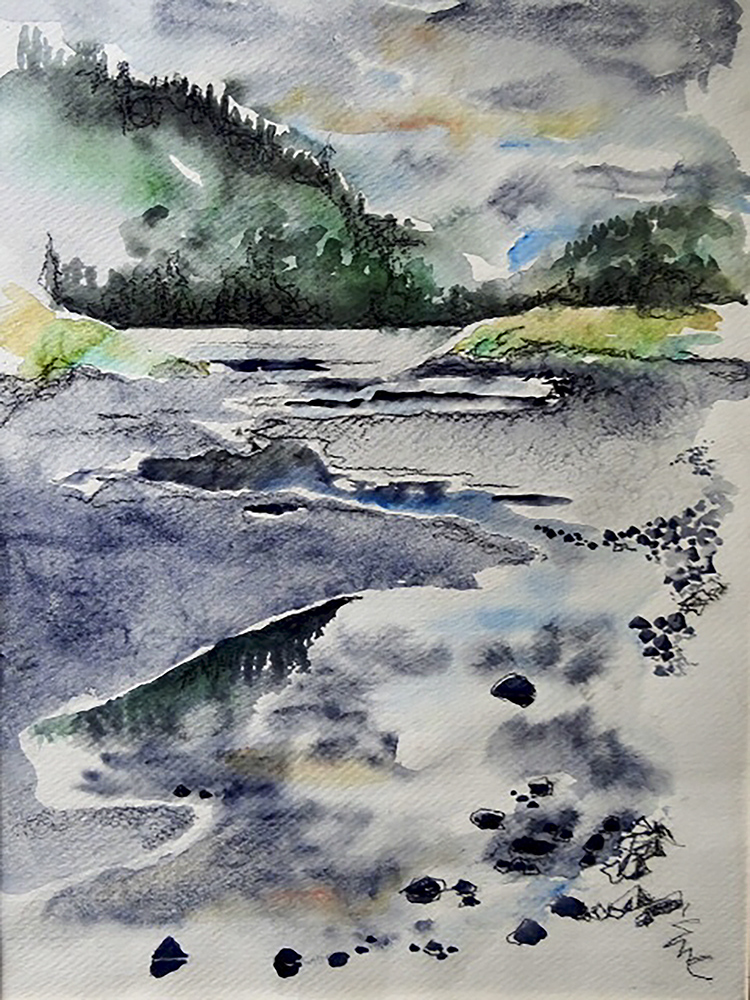 A watercolour of "Roses in the Rain"