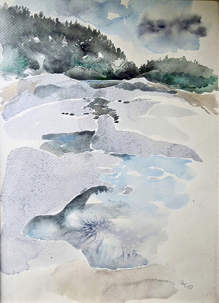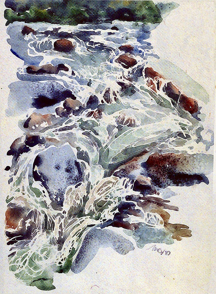 A watercolour of "First Cube"